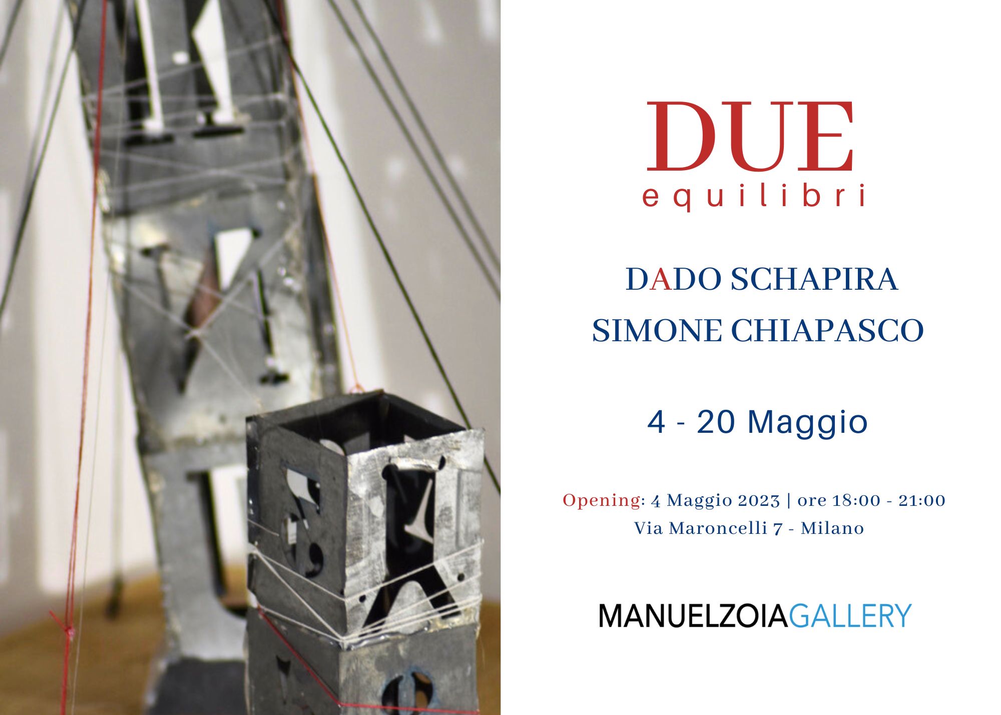 DUE: Equilibri Dado Schapira e Simone Chiapasco Manuel Zoia Gallery, Milano a cura di Marta Tonetti 2023 Condividi: Condividi su X (Si apre in una nuova finestra) X Condividi su Facebook (Si apre in una nuova finestra) Facebook Mi piace Caricamento... Correlati